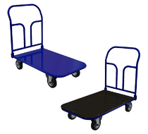 Платформенные тележки представляют собой конструкцию с 4 колёсами, сплошной или решётчатой платформой и одной либо двумя ручками для управления тележкой (ручки могут быть съёмными). Рассмотрим, какие виды платформенных тележек представлены в ассортименте компании "МетПромМебель".