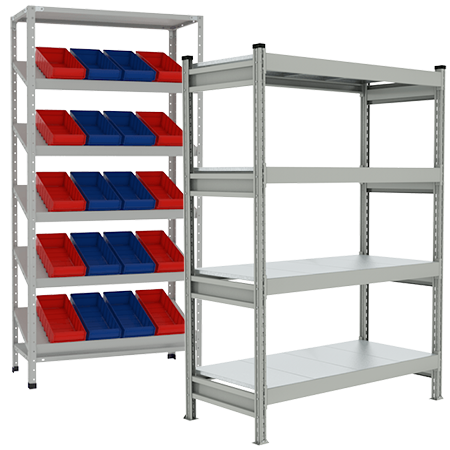 Для решения повседневных задач хранения подходят полочные стеллажи, представляющие собой сборную конструкцию, состоящую из стоек или рам и крепящихся к ним полок. Крепление элементов производится с помощью болтов или зацепов.