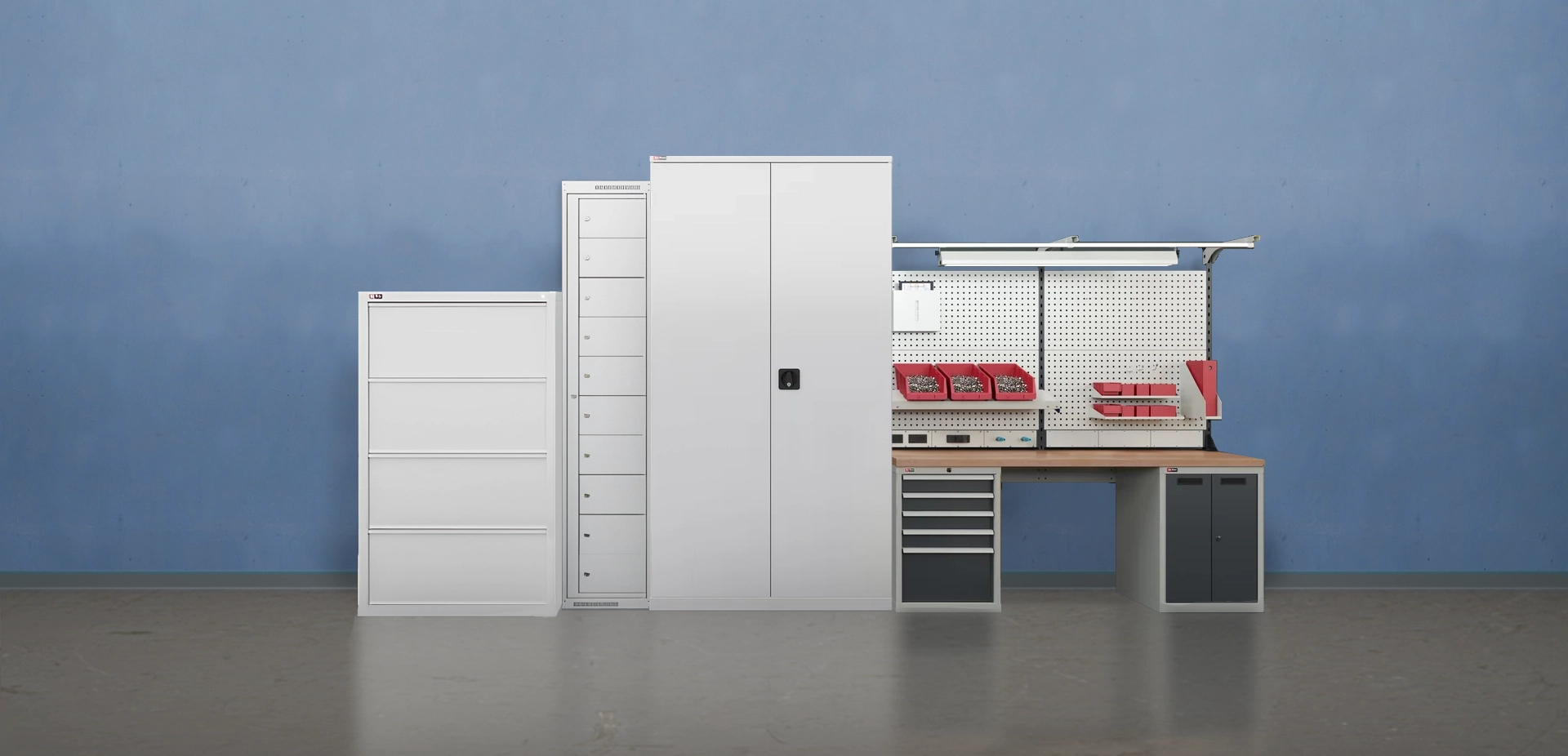 Особое внимание уделяется эргономике и функциональности. Шкафы и стеллажи снабжены регулируемыми полками, а верстаки могут комплектоваться надстройками и тумбами для удобной организации рабочих процессов. При этом мебель отличается современным, аккуратным дизайном, который гармонично вписывается как в производственные, так и в офисные пространства.