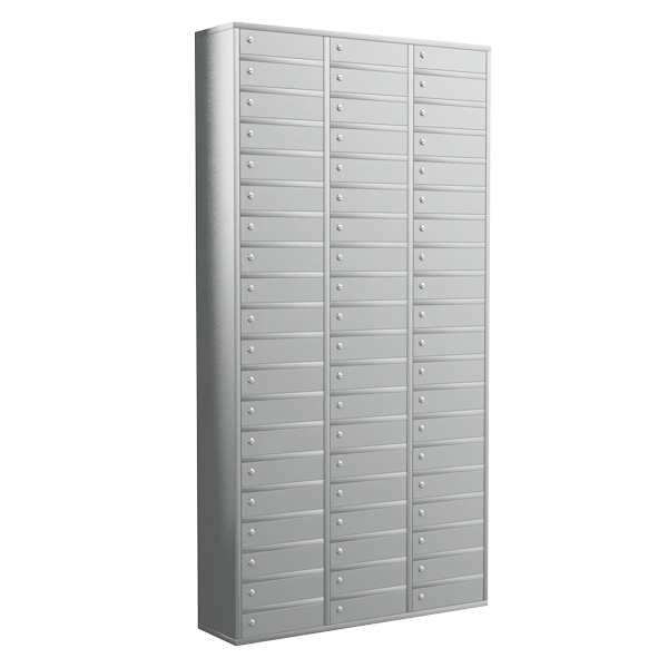 - Абонентский шкаф на 60 «глухих» ячеек под формат А5 без прорезей под корреспонденцию и сервисной двери.