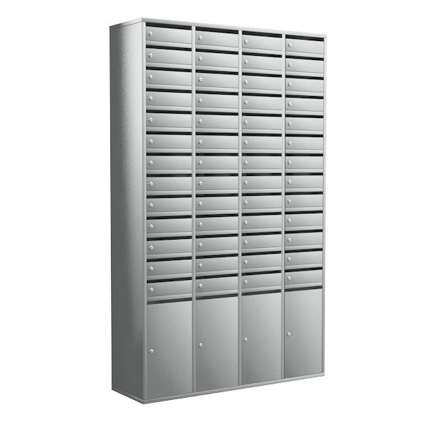 - Абонентский шкаф на 56 ячеек под формат А4 с прорезями под корреспонденцию.