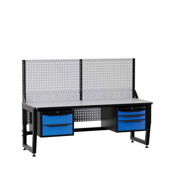 - Комплектация: 2 подвесные тумбы, 2 перфорированных экрана и панель коммуникаций.