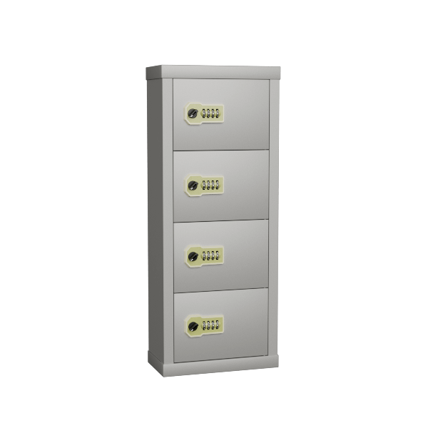 - Шкаф для хранения мобильных телефонов на 4 ячейки с кодовым замком — компактное решение для организации безопасного хранения телефонов и личных вещей сотрудников и посетителей в офисах, учебных заведениях и на предприятиях.