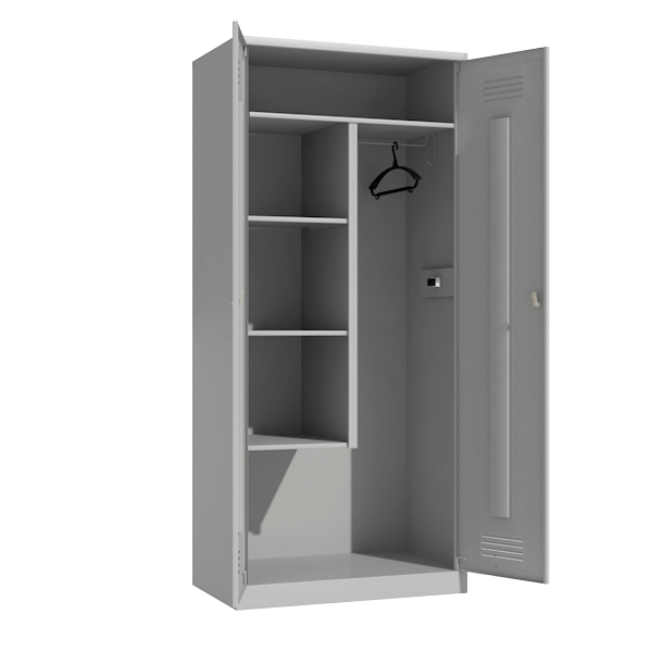 - Запирается двумя металлическими дверцами, в каждой дверце есть вентиляционные отверстия.