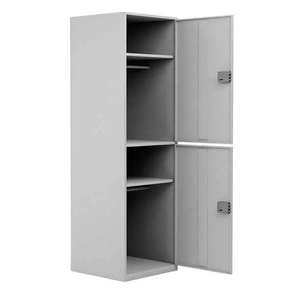 - Внутреннее пространство продумано для удобной и быстрой эксплуатации: шкаф оснащён двумя полками и двумя перекладинами для вешалок, что позволяет рационально размещать бронежилеты и каски, поддерживать порядок и оперативно получать доступ к экипировке в экстренных ситуациях.