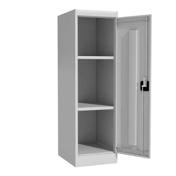 - Внутри шкафа две прочные стационарные полки, образующие три одинаковых отделения.