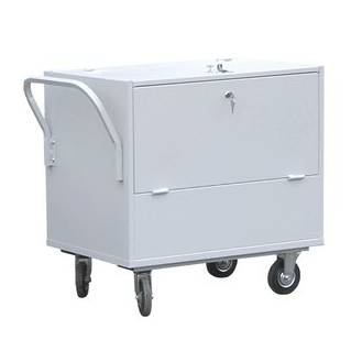 - Имеет две запираемые металлические дверцы: спереди и сверху.