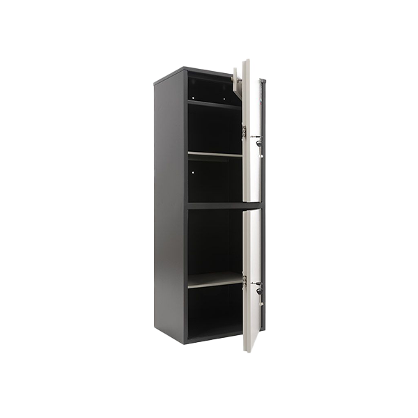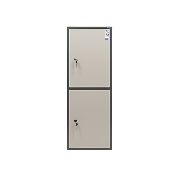 - Поделён на две равные секции с отдельными дверцами, закрывающиеся на ключевые трёхригельные замки сувальдного типа.