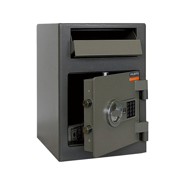 - Металлический взломоустойчивый депозитный сейф для хранения денег и обеспечения их сохранности.