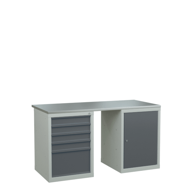 - Цвет корпусов верстака и тумбы – серый (RAL 7038), цвет дверец, экрана и ящиков – серый (RAL 7016).