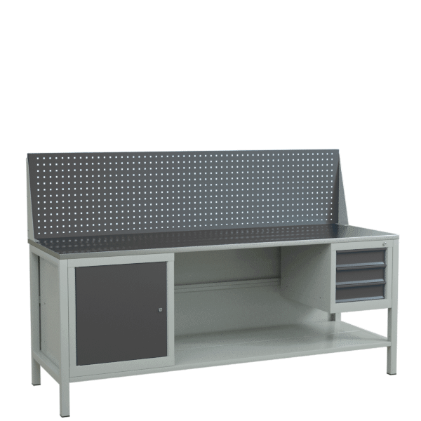 - Корпусы верстака и тумб выполнены в сером цвете (RAL 5012).