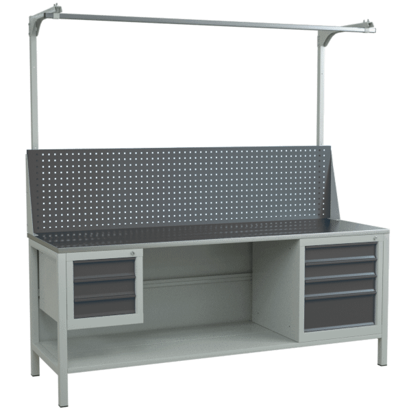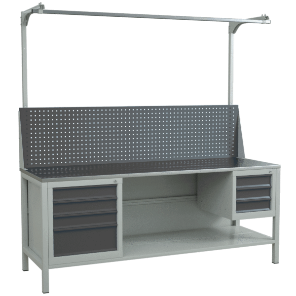 Верстак 2000 с экраном с консолями и 2 тумбами с выдвижными ящиками