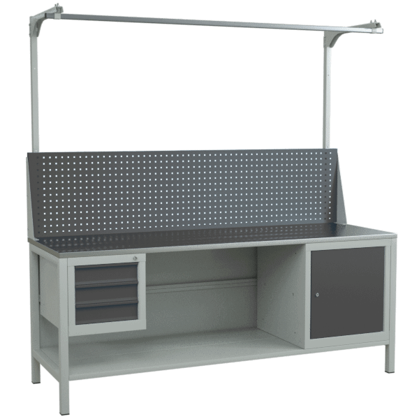 Верстак 2000 с экраном с консолями, тумбой и подвесной тумбой с 3 ящиками