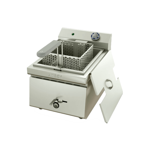 - Состоит из блока управления, фритюрной ванны, технологического садка и крышки.