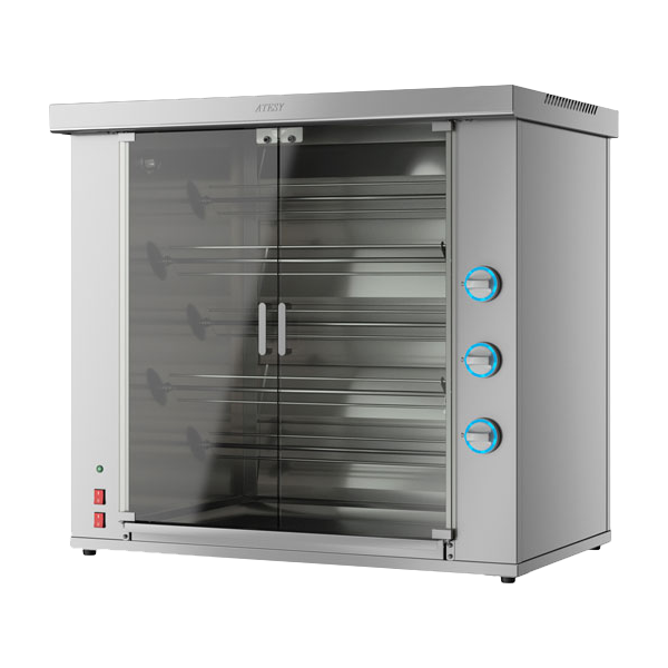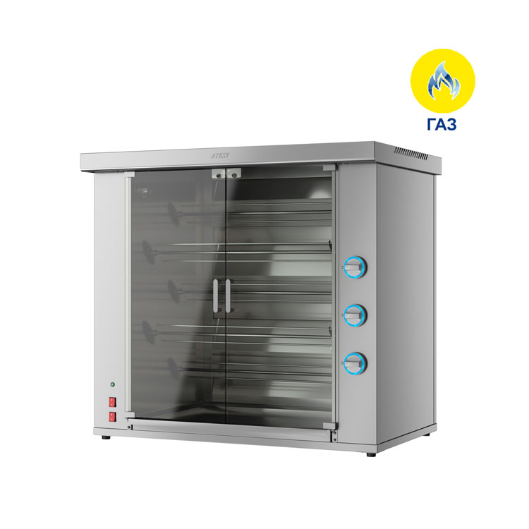 - Тушки насаживаются на крутящийся вертел, благодаря чему равномерно прожариваются со всех сторон.