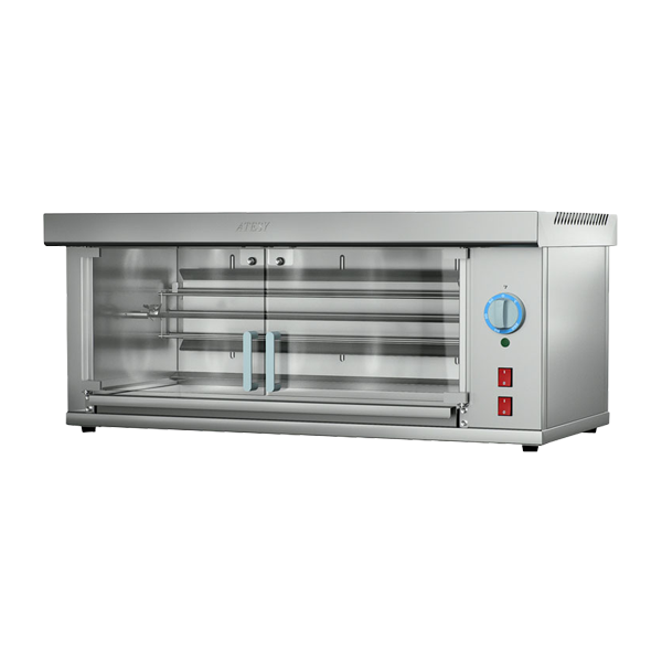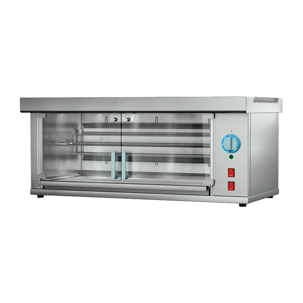- Специальный механизм вращения шампуров позволяет легко устанавливать и извлекать их, значительно упрощая работу персонала.