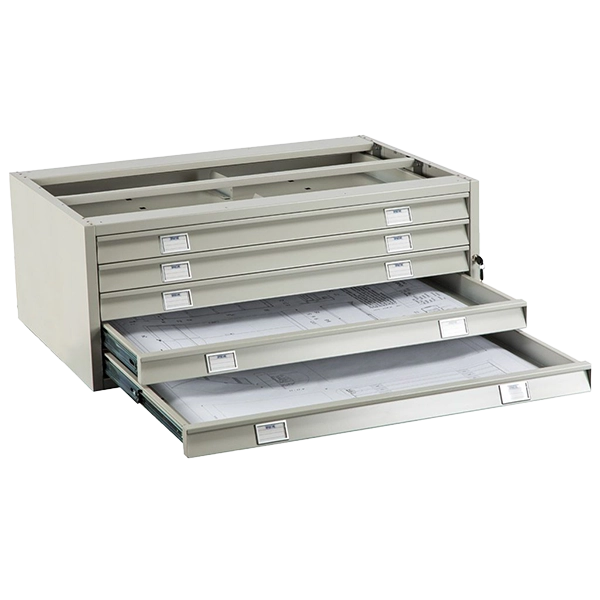 - Установка промежуточной секции позволяет увеличить емкость картотеки до 15 ящиков, что делает систему особенно удобной для архивов и проектных организаций с большим объемом документации.