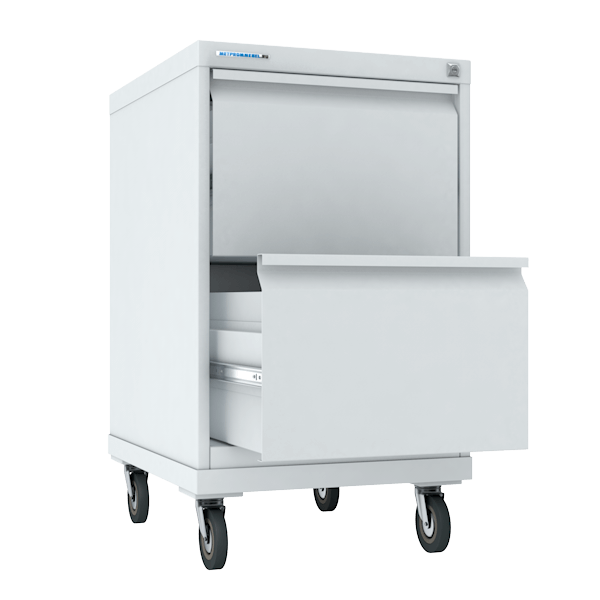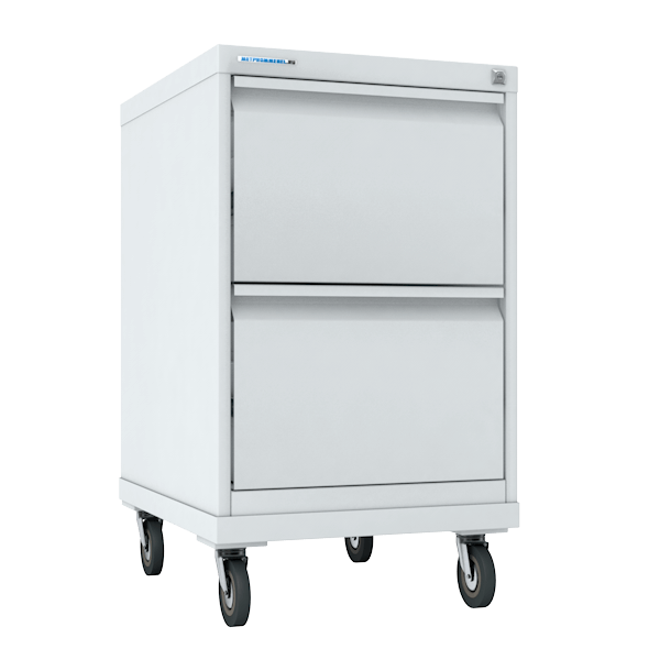 - Шкаф оборудован подставкой с колесами, что упрощает его перемещение.