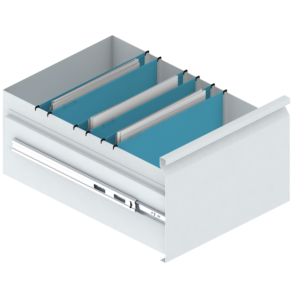 - Картотека оборудована 4 выдвижными ящиками на телескопических направляющих.