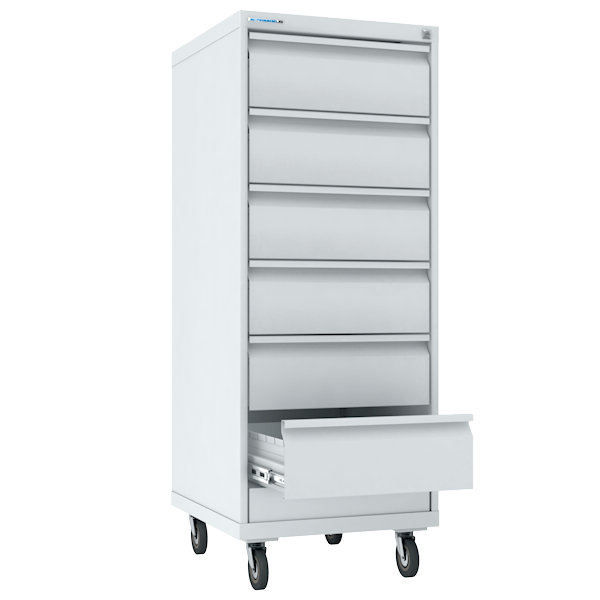 - Шкаф оборудован мобильной подставкой на колесах, что значительно упрощает его перемещение в пределах помещения.