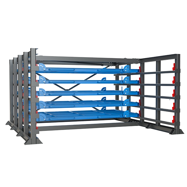 - Стеллаж для листового металла 3000x1500 с выкатными платформами — современное решение для хранения крупногабаритных металлических листов в условиях производства, складов и промышленных помещений.