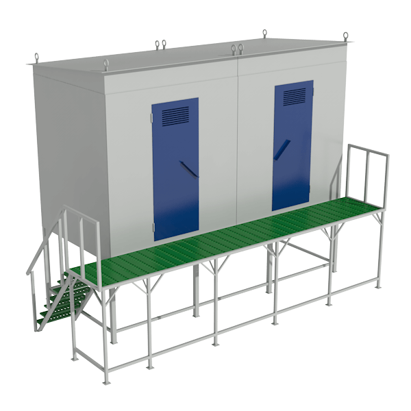 - Габариты в разобранном состоянии: два хранилища для баллонов – 500х1250х2100 мм; основание под хранилища – 1500х4200х1244 мм; платформа для приема баллонов – 1500х5049х1000 мм; лестница приставная – 1500х849 мм.