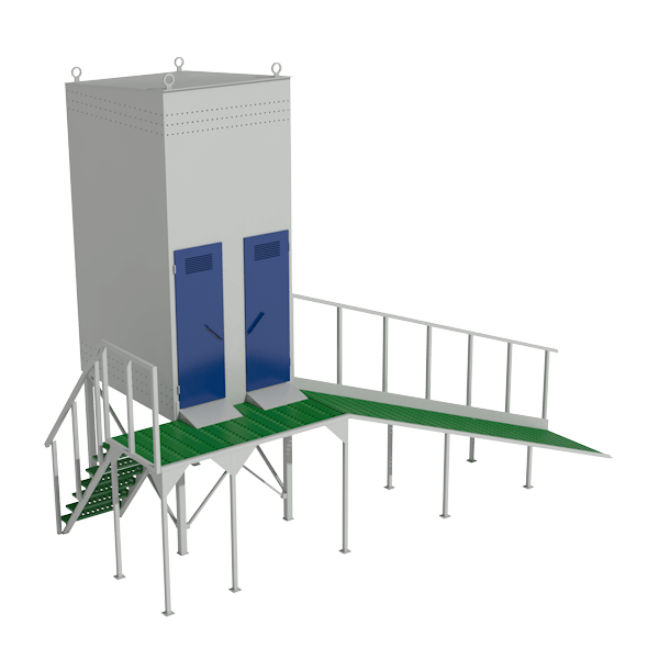 - Склад для баллонов установлен на подставку, к которой присоединяется площадка на ножках, лестница с поручнем и пандус для скатывания баллонов.