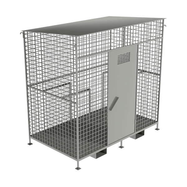 - Хранилище предназначено для хранения 12 пропановых баллонов и других, аналогичных по размеру баллонов.