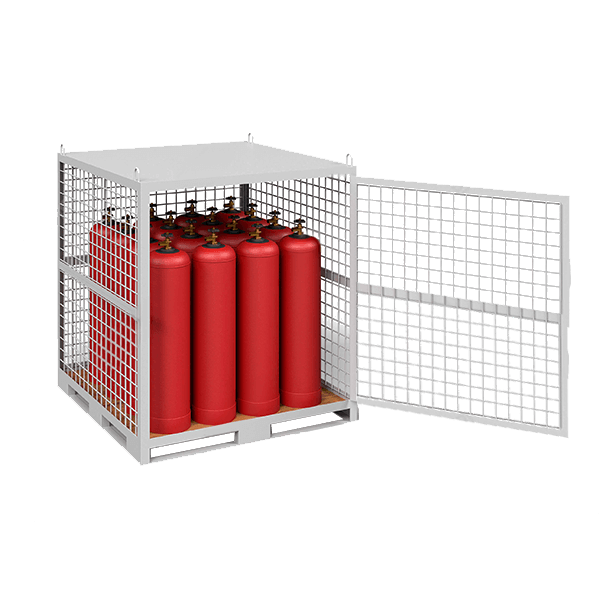 - Предназначена для хранения и транспортировки 16 пропановых баллонов диаметром 305 мм и объёмом 50 литров.