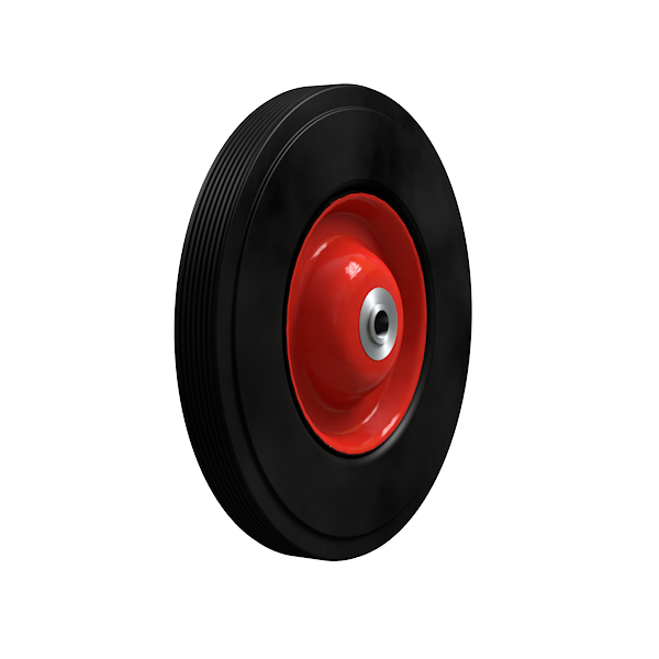 - Колеса промышленные с литой черной резиной и стальным прессованным цельным ободом отличаются хорошими амортизационными качествами, низким сопротивлением качению при плохих дорожных условиях.
