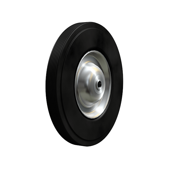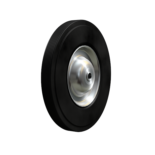 - Шина выполнена из чёрной литой эластичной резины; обод – из цельной прессованной стали.