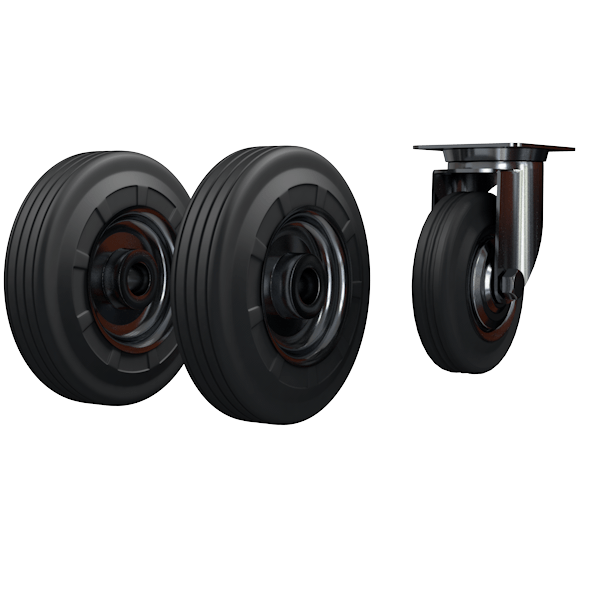 - Обеспечивают плавный манёвренный ход оборудования, при движении не оставляют следов на поверхностях.