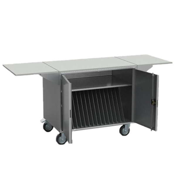 - Тележка комплектуется двумя поворотными и двумя неповоротными промышленными колёсами диаметром 125 мм.
