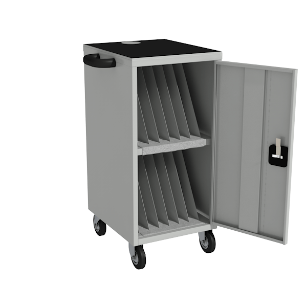- Металлическая тележка предназначена для хранения и зарядки 14 ноутбуков.