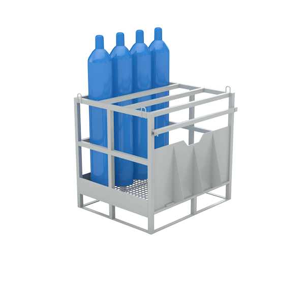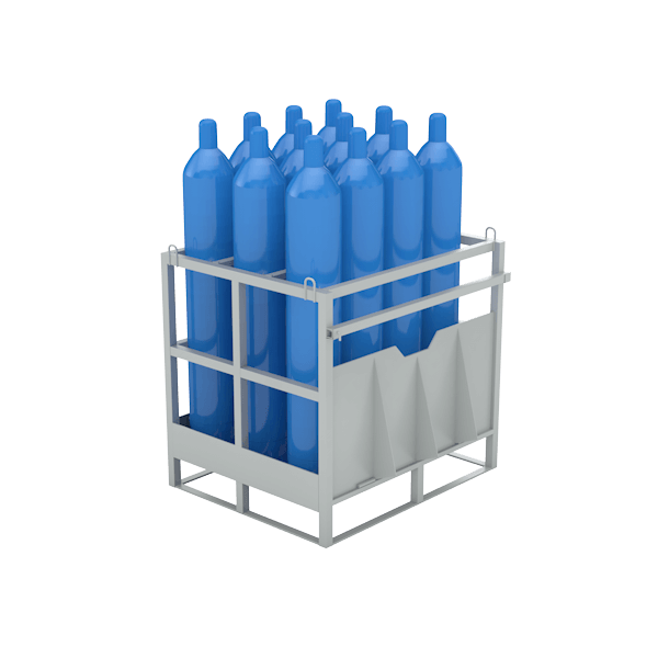 - Предназначен для безопасной транспортировки и хранения газовых баллонов объёмом до 40 литров.
