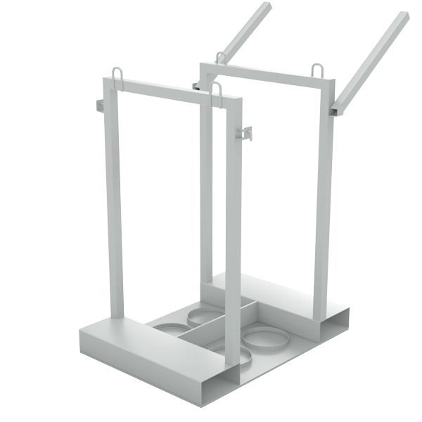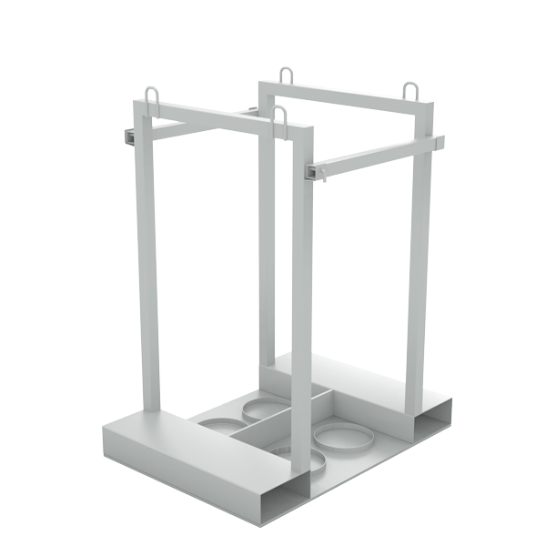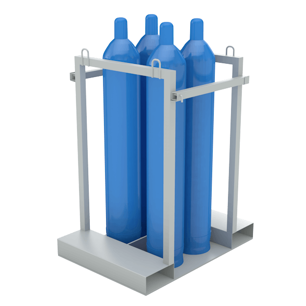 - Контейнер (палета) для 4 кислородных газовых баллонов для надёжного хранения и перемещения четырех газовых баллонов на производстве.