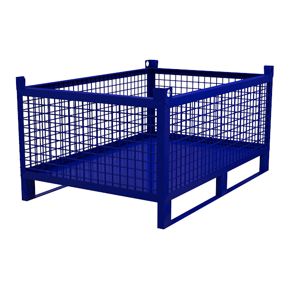 - Контейнер оснащён опорными швеллерами, которые позволяют устанавливаться на ригели стеллажей.