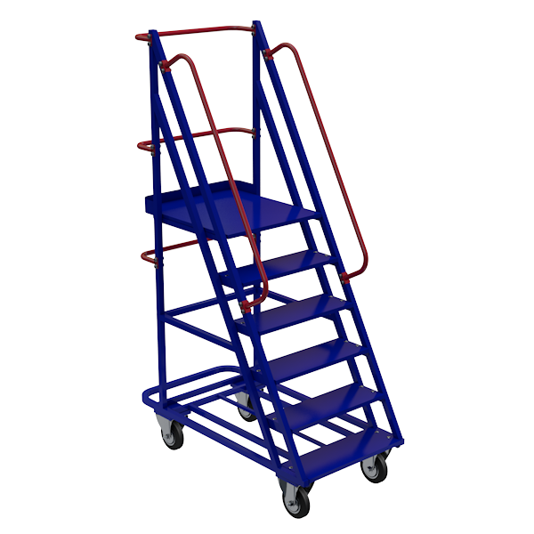 - Поверхности окрашены в контрастные цвета: полимерная порошковая краска RAL 5002 (синий), поручни и рабочая площадка RAL 3020 (красный).