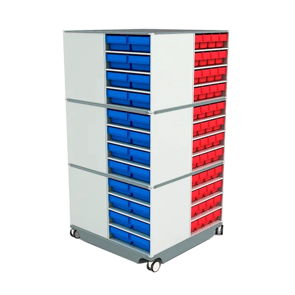 Поворотная кассетница КП-03 синие и красные ящики