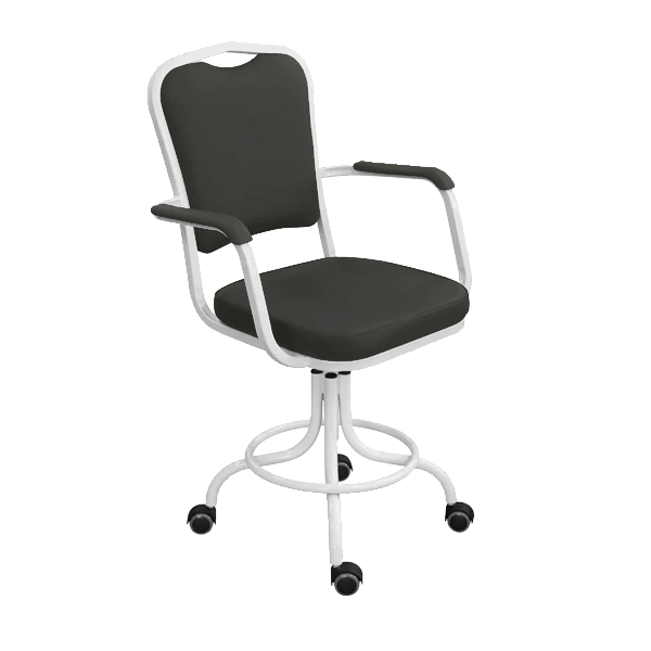 - Кресло лабораторное на винтовой опоре КР02-1, обивка серая, каркас белый предназначено для использования в лабораториях, медицинских учреждениях, офисах и других рабочих пространствах, где требуется комфорт и высокая мобильность при длительном сидении.