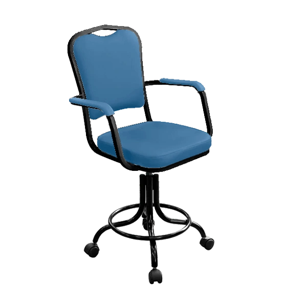 - Диаметр сиденья — 390 мм, наполнитель — плотный пенополиуретан, обивка — экокожа насыщенного синего цвета, устойчивая к износу и воздействию дезсредств.