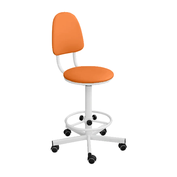 - Кресло на винтовой опоре с регулируемой опорой для ног КР02/К, цвет оранжевый, каркас белый — практичное и эргономичное решение для медицинских кабинетов, косметологических и массажных салонов, лабораторий и офисов.