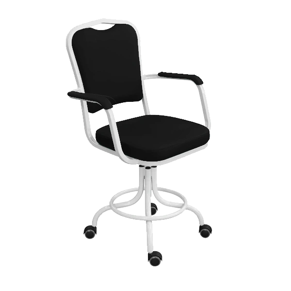 - Кресло лабораторное на винтовой опоре КР02-1, обивка черная, каркас белый идеально подходит для использования в лабораториях, медицинских учреждениях и офисах, где важен комфорт, долговечность и эргономика.