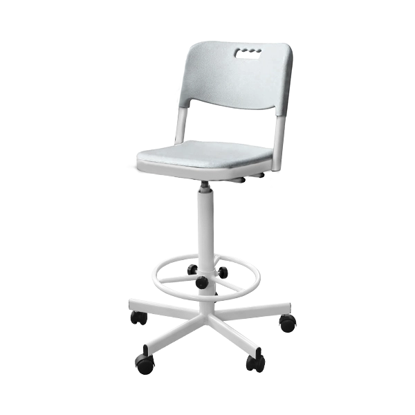 - Качественные колёсные опоры позволяют легко перемещать стул.