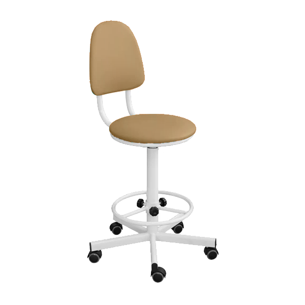 - Кресло на винтовой опоре с регулируемой опорой для ног КР02, цвет бежевый, каркас белый — эргономичное решение для медицинских, косметологических и лабораторных помещений, где важны комфорт, устойчивость и гигиеничность.