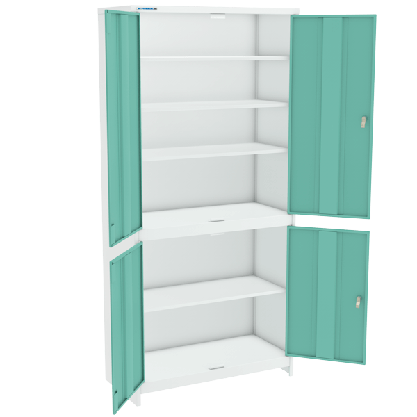 - Имеет четыре запираемые металлические дверцы, окрашенные порошковой краской в светло-зеленый цвет.