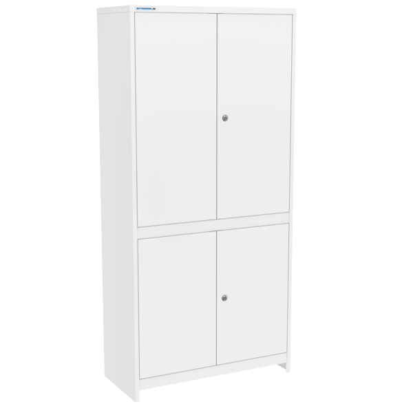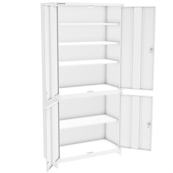 - В верхнем отделении оборудован тремя металлическими полочками, а также двумя металлическими дверьми, которые закрываются на замок.
