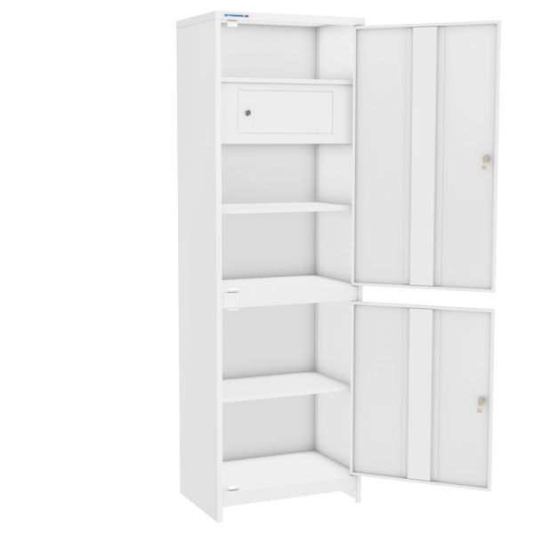 Шкаф оснащен мастер-системой, которая позволяет открыть все замки при помощи одного мастер-ключа. Мастер-ключ поставляется в комплекте.