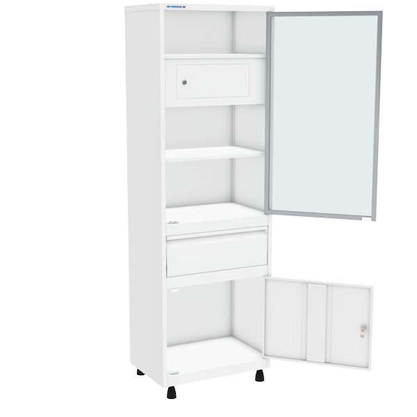 - Предназначен для хранения медикаментов, документов, личных вещей в медицинских учреждениях коммерческого и государственного типа.