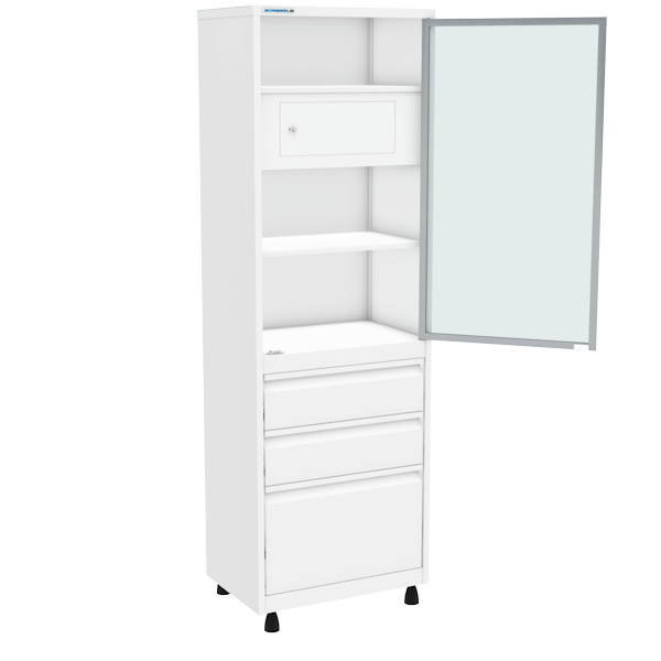 - Устанавливается в медицинские организации для хранения препаратов, инструментов, документации, личных вещей.
